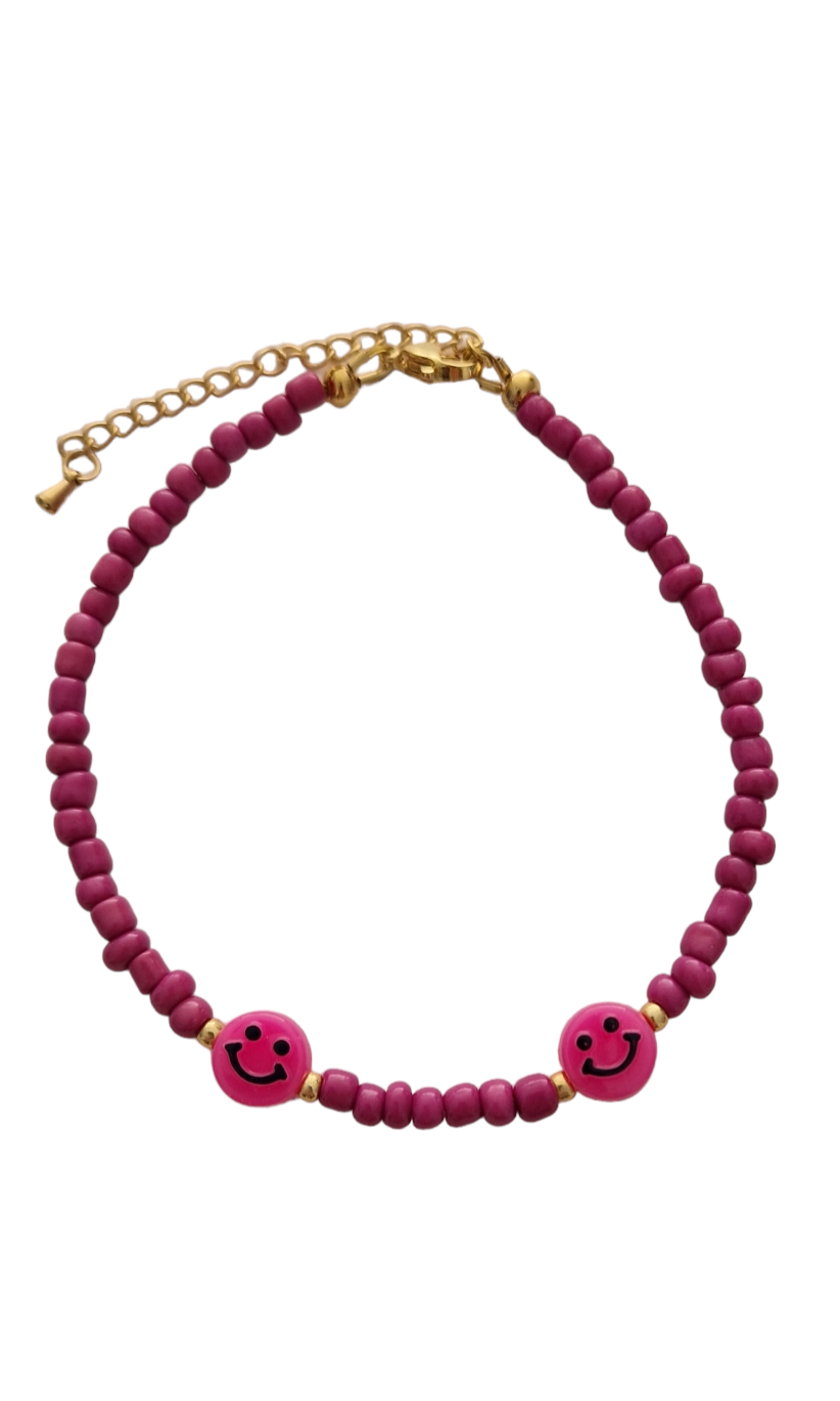 RVS bandje met gekleurde glaskralen en smileys.