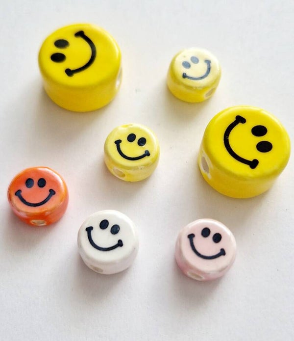 met 2 roze keramische (ca.1 cm) smiley kralen.